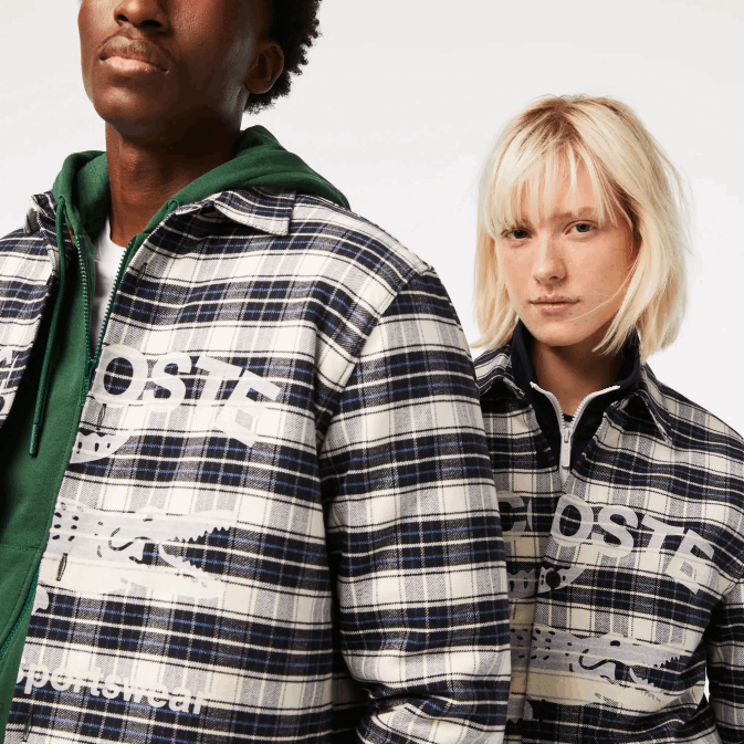 une surchemise dotée de graphismes audacieux et d'un design contemporain. un style spectaculaire qui met à jour les marques emblématiques de lacoste.
