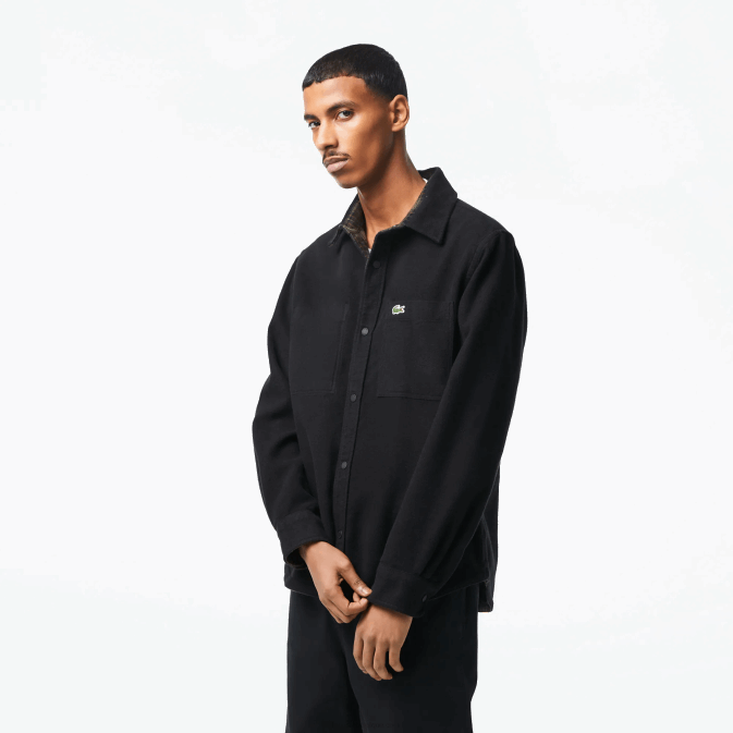monochrome d'un côté, carreaux de l'autre. réchauffez votre look avec cette surchemise lacoste réversible.