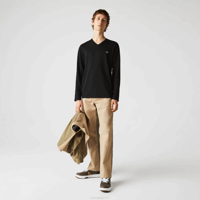 Offrez-vous la haute qualité, la douceur et la durabilité du coton pima avec ce t-shirt à manches longues de couleur unie. un petit col en V raffiné et une coupe cintrée contemporaine complètent ce nouveau style. gardez le confort en l'associant à une doudoune.